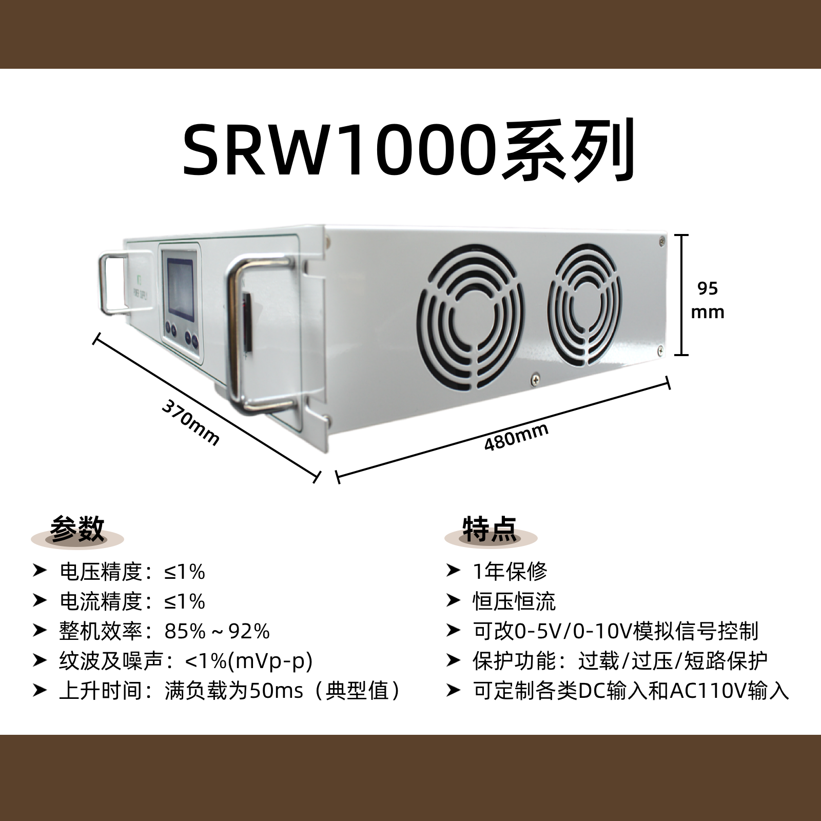 产品描述:SRW1000是一款高性能数控高压直流电源,输出电压范围3KV~300KV连续可调,最大输出功率1000W,具备恒压恒流工作模式和高精度数显功能。支持RS485通讯接口和模拟信号控制,可远程精确调节电压电流参数,适用于绝缘材料测试、静电喷涂、X射线发生器、电子束设备、科学研究等需要稳定高压直流电源的工业与实验室应用场景。