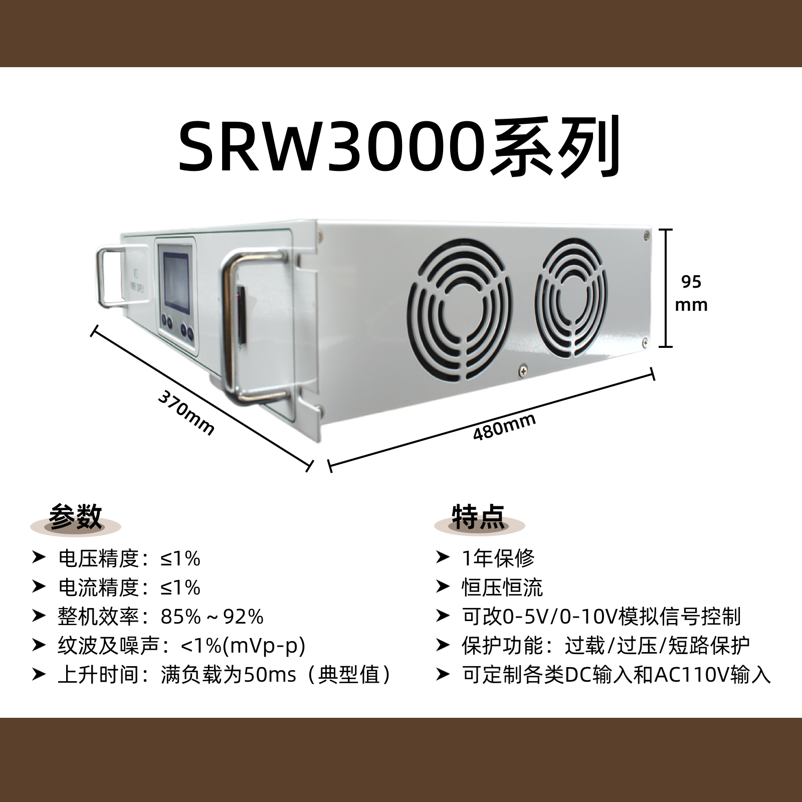 产品描述:SRW3000是一款大功率数控高压直流电源,输出电压范围5KV~300KV连续可调,最大输出功率达3000W,具备恒压恒流工作模式和高精度数显功能。支持RS485通讯接口和模拟信号控制,可实现远程精确控制和系统集成,适用于电子加速器、高压放电测试、大功率X射线设备、工业静电应用、高能物理实验等需要大功率稳定高压直流电源的工业与科研领域。