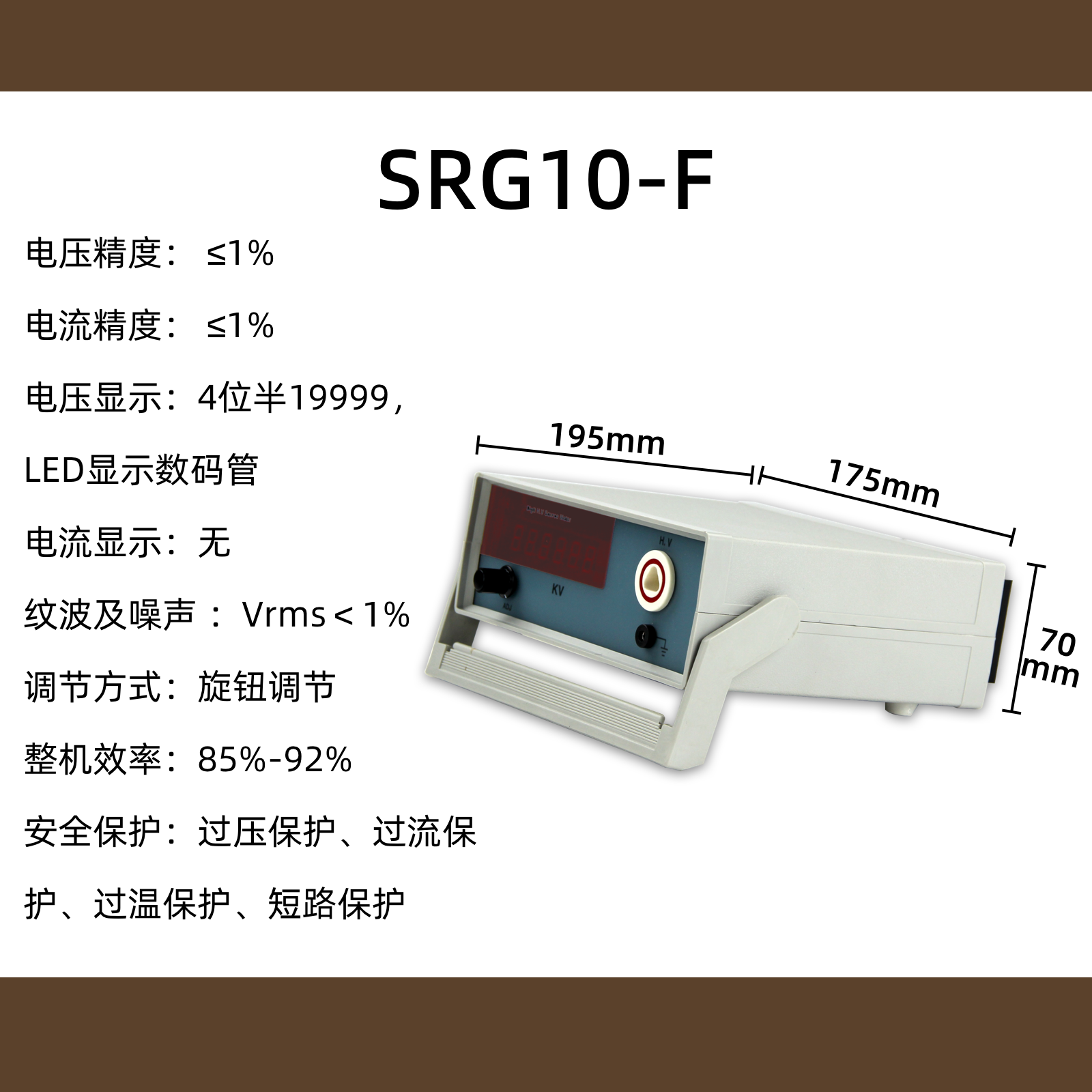产品描述:SRG10-F是一款专业小功率负高压直流可调开关电源,输出范围-5KV至-35KV连续可调,功率10W,具备高精度恒压输出能力。专为光电倍增管、电子束设备、静电吸附、科学实验及精密仪器提供稳定可靠的负高压供电解决方案,适用于低电流、高电压需求的特殊应用场景。