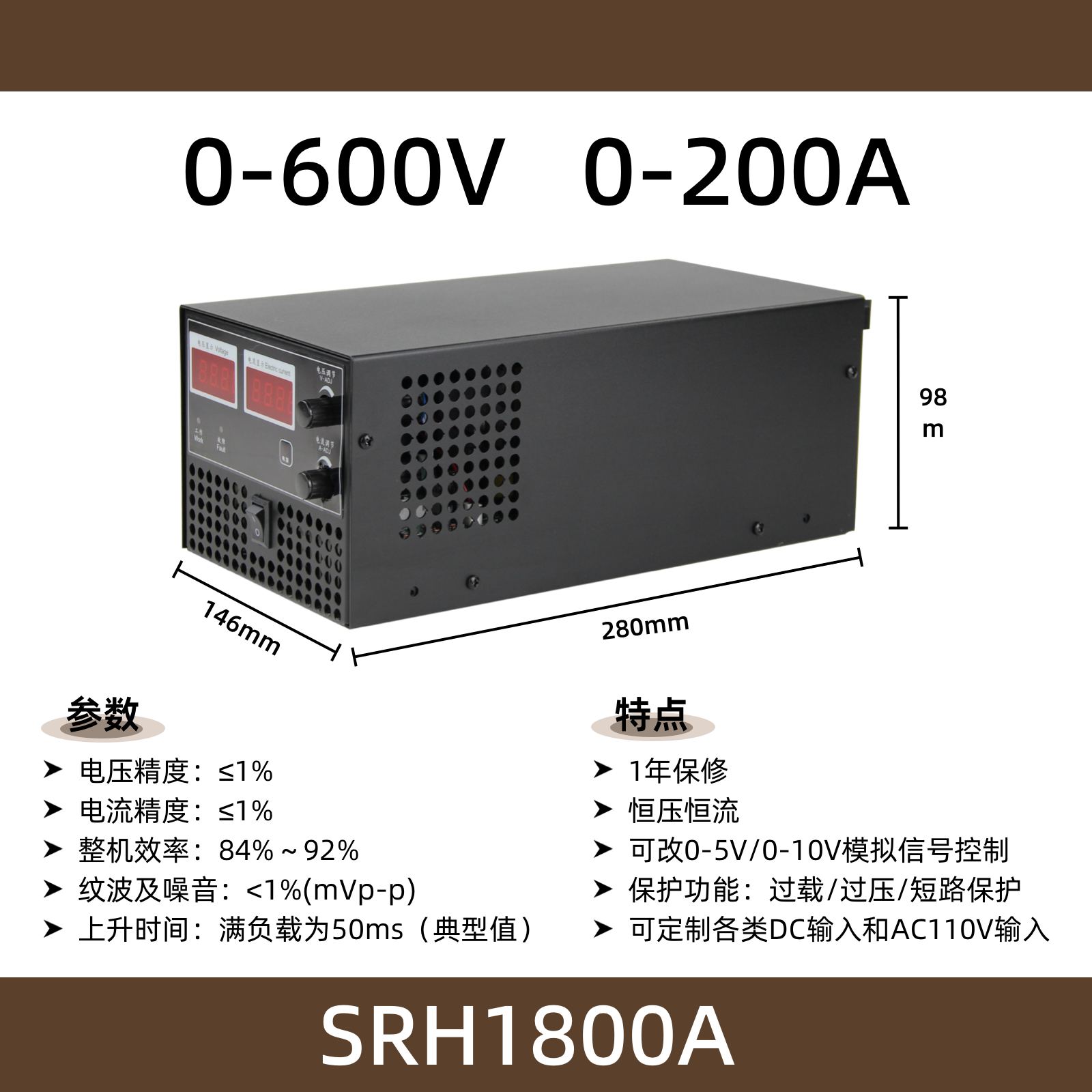 产品描述:SRH1800A 1800W工业级可定制直流开关电源,支持AC/DC 110V-220V宽范围输入,稳压输出12V/24V直流。专为工业设备供电、安防监控系统、LED照明工程及特种车辆电力系统等场景设计,可根据需求定制电压、功率及防护等级,提供稳定可靠、灵活适配的直流电源解决方案。