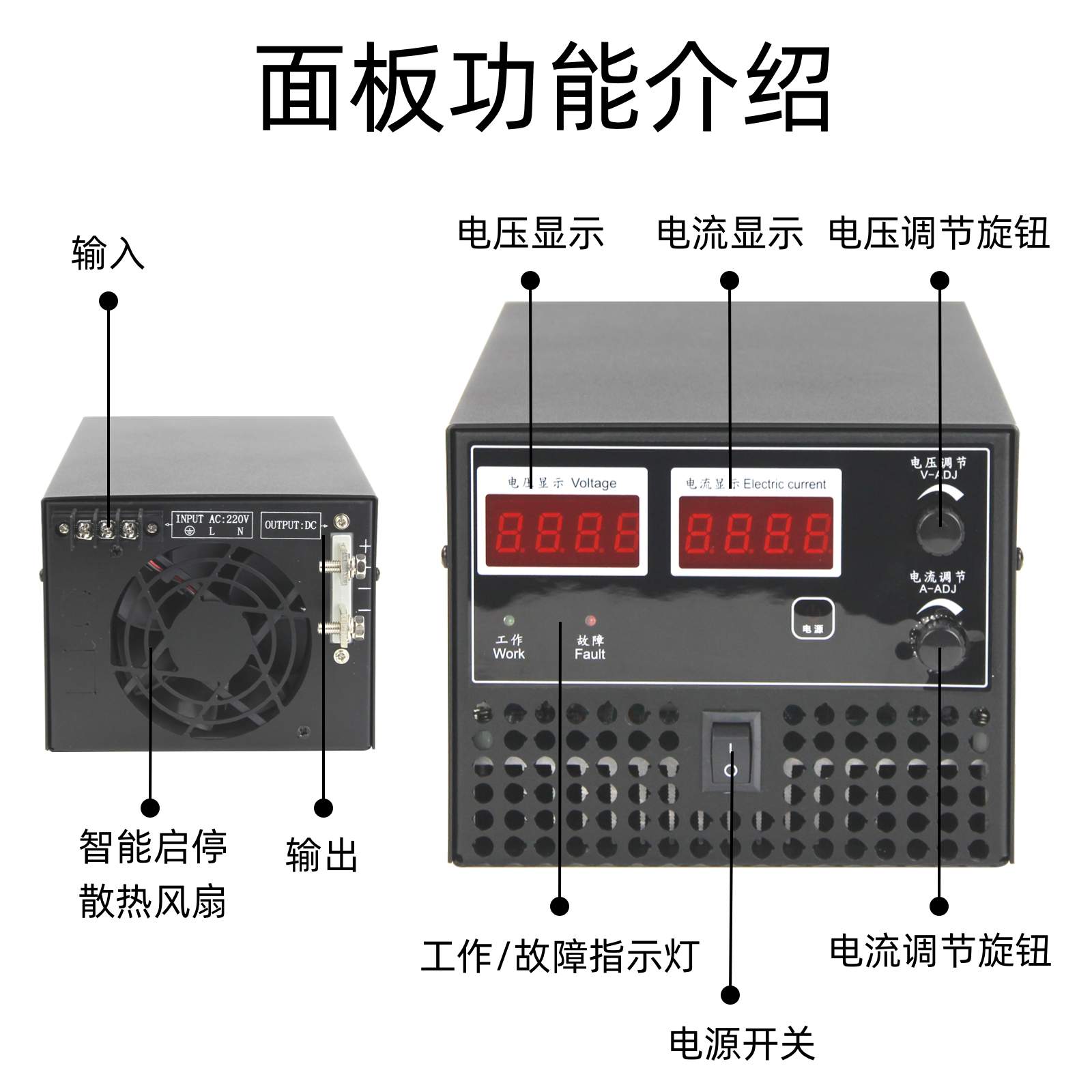 3. 电流调节起效值指电源输出可调限流的最小值,因电源个体差异,一般限流最小值≤2%的额定电流;
