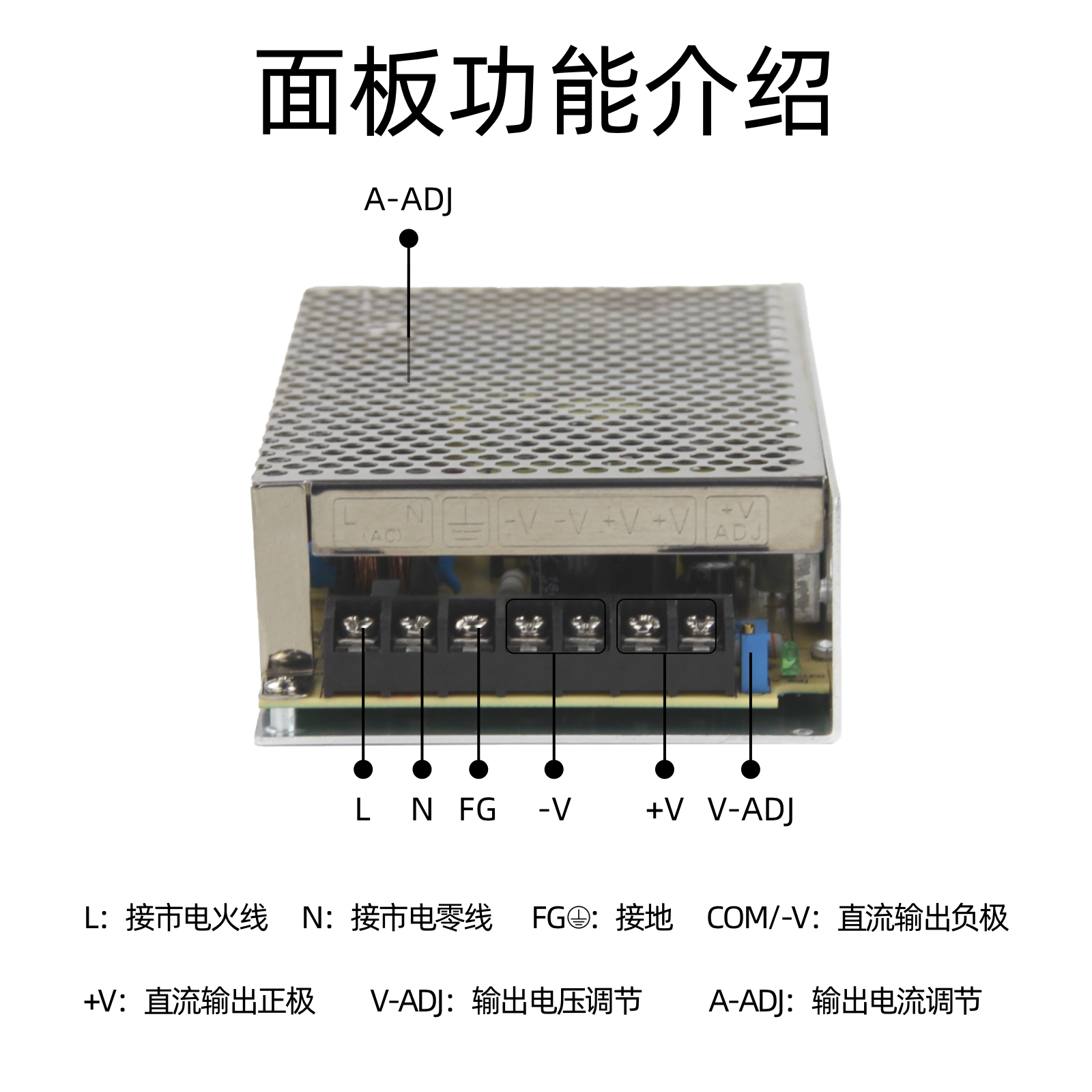 2. 电流调节起效值指电源输出可调限流的最小值,因电源个体差异,一般限流最小值≤2%的额定电流;